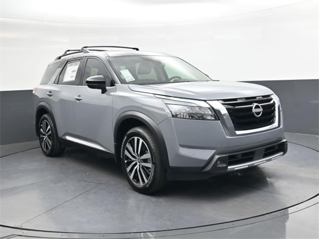 Solid Gray/Super Black 2025 Nissan Pathfinder Platinum 4WD 9-Speed Automatic 3.5L V6 DOHC ***LIFETIME POWERTRAIN WARRANTY***, ***NEW ARRIVAL***, WE DELIVER ANYWHERE, SERVICE RECORDS AVAILABLE, 4WD. Price includes: $5000 - Nissan Customer Cash. Exp. 11/03/2025