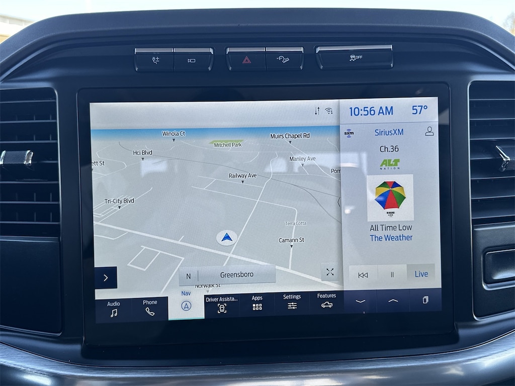 Equipment Group 502A High (2nd Row Heated Seats, Heated Steering Wheel, Leather-Trimmed Bucket Seats, LED Projector w/Dynamic Bending Headlamps, Onboard 400W Outlet, Power Glass Sideview Mirr w/Chrome Skull Caps, Power Tilt/Telescoping Steering Column w/Memory, Radio: B&O Sound System by Bang & Olufsen, Rain-Sensing Wipers, and Universal Garage Door Opener), Ford Co-Pilot360 Assist 2.0 (Connected Built-In Navigation, Evasive Steering Assist, Intelligent Adaptive Cruise Control w/Stop & Go, Intersection Assist, and Speed Sign Recognition), FX4 Off-Road Package (4x4 FX4 Off-Road Bodyside Decal, Hill Descent Control, Monotube Rear Shocks, Off-Road Tuned Front Shock Absorbers, Rock Crawl Mode, and Tray Style Floor Liner), Lariat Chrome Appearance Package (6" Chrome Running Board, Chrome 2-Bar Grille w/4 Minor Bars, Chrome Door & Tailgate Handles w/Body-Color Bezel, Chrome Single-Tip Exhaust, Chrome Skull Caps on Exterior Mirrors, and Wheels: 18" Chrome-Like PVD), 3.5L PowerBoost Full-Hybrid V6, 4WD, Navigation system: Connected Navigation (90-Day Trial), 18" Machined-Aluminum Wheels, 4-Wheel Disc Brakes, 6" Extended Chrome Running Board, 7 Speakers, ABS brakes, Adjustable pedals, Air Conditioning, Alloy wheels, AM/FM radio: SiriusXM with 360L, Auto High-beam Headlights, Auto-dimming door mirrors, Auto-dimming Rear-View mirror, Automatic temperature control, Brake assist, Bumpers: chrome, Class IV Trailer Hitch Receiver, Compass, Delay-off headlights, Driver door bin, Driver vanity mirror, Dual front impact airbags, Dual front side impact airbags, Electronic Stability Control, Emergency communication system: SYNC 4 911 Assist, Exterior Parking Camera Rear, Front anti-roll bar, Front Center Armrest w/Storage, Front dual zone A/C, Front fog lights, Front reading lights, Front wheel independent suspension, Fully automatic headlights, Heated door mirrors, Heated front seats, Illuminated entry, Leather-Trimmed 40/20/40 Front Seat, LED Sideview Mirror Spotlights, Low tire pressure warning, Memory seat, Occupant sensing airbag, Outside temperature display, Overhead airbag, Overhead console, Panic alarm, Passenger door bin, Passenger vanity mirror, Pedal memory, Power door mirrors, Power driver seat, Power passenger seat, Power steering, Power windows, Pro Power Onboard - 7.2KW, Radio data system, Radio: AM/FM SiriusXM w/360L, Rear reading lights, Rear seat center armrest, Rear step bumper, Rear window defroster, Remote keyless entry, Security system, Speed control, Speed-sensing steering, Split folding rear seat, Steering wheel mounted audio controls, SYNC 4 w/Enhanced Voice Recognition, Tachometer, Telescoping steering wheel, Tilt steering wheel, Traction control, Tray Style Floor Liner (47W), Trip computer, Turn signal indicator mirrors, Twin Panel Moonroof, Variably intermittent wipers, Ventilated front seats, Voltmeter, and Wheels: 20" Chrome-Like PVD.