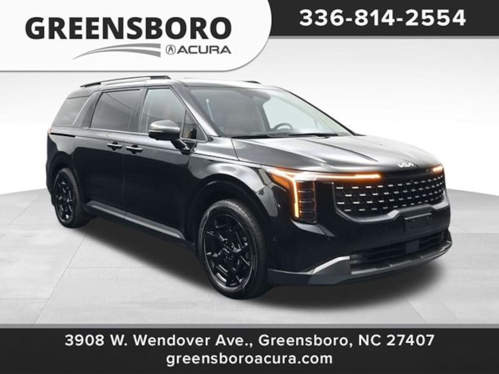 2025 Kia Carnival SX Prestige Aurora Black Pearl CLEAN CARFAX, ⢠For additional information, please call (336)-814-2554, **LOCATED AT GREENSBORO ACURA!**, 3908 W WENDOVER AVE GREENSBORO, NC 27407, 2nd Row Laminated Windows, Ambient Lighting, Dual Screen Rear Seat Entertainment System, Heated/Ventilated 2nd Row Power VIP Lounge Seats, High Glossy Interior Trim, Navigation system: AVN 5.0 Navigation System, Power 2nd-Row Moonroof, Power Liftgate, Power moonroof, Rear Seat Entertainment Package, SX Prestige Seat Package. CARFAX One-Owner. Clean CARFAX. Priced below KBB Fair Purchase Price! Odometer is 3801 miles below market average!