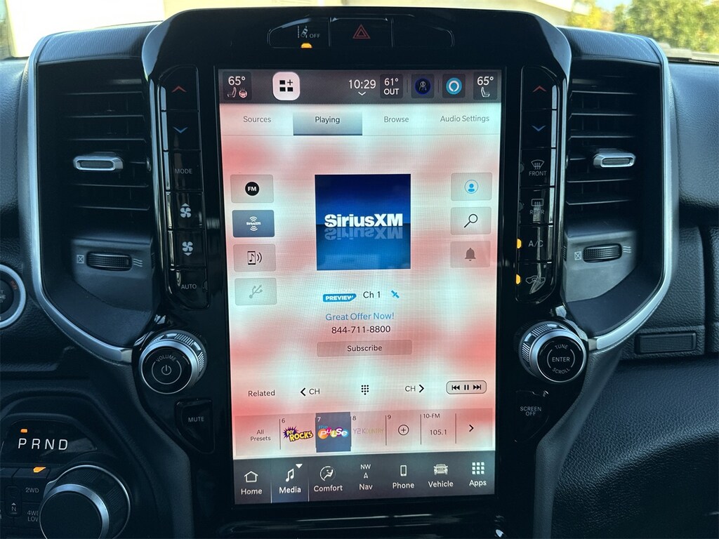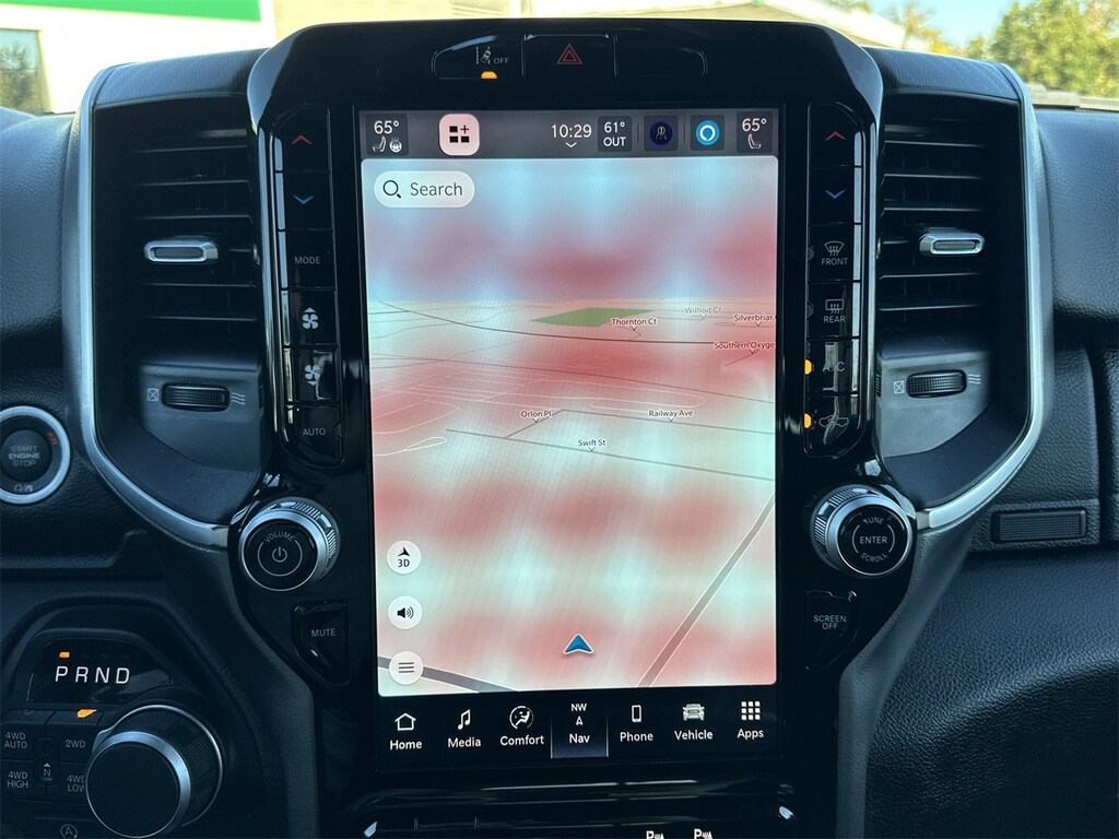 LOCALLY OWNED AND SERVICED, **LIFETIME POWERTRAIN WARRANTY**, **WE DELIVER ANYWHERE**, 115V Auxiliary Power Outlet, 115V Auxiliary Rear Power Outlet, 12" Touchscreen Display, 2nd Row In Floor Storage Bins, 400W Inverter, 4G LTE Wi-Fi Hot Spot, 9 Amplified Speakers w/Subwoofer, Accent Color Door Handles, Accent Color Premium Power Mirrors, Accent Color Tailgate Handle, Air Conditioning ATC w/Dual Zone Control, Anti-Spin Differential Rear Axle, Apple CarPlay, Auto Power-Folding Mirrors, Auto-Dimming Exterior Driver Mirror, Auto-Dimming Rear-View Mirror, Big Horn Level 2 Equipment Group, Black Exterior Mirrors, Black Exterior Truck Badging, Black Headlamp Bezels, Black Interior Accents, Black Painted Exterior Mirrors Caps, Black Premium Power Mirrors, Black Tail Lamp Bezels, Body Color Front Bumper, Body Color Rear Bumper w/Step Pads, Cluster 7.0" TFT Color Display, Configurable Drive Mode, Connected Travel & Traffic Services, Connectivity - US/Canada, Convex Wide-Angle Exterior Mirror Insert, Deluxe Cloth Bucket Seats, Exterior Mirrors Courtesy Lamps, Exterior Mirrors w/Heating Element, Exterior Mirrors w/Supplemental Signals, Glove Box Lamp, Google Android Auto, GPS Antenna Input, GPS Navigation, Grille Black Surround Black Mesh, HD Radio, Heated Front Seats, Heated Steering Wheel, Integrated Voice Command w/Bluetooth, Leather Wrapped Steering Wheel, LED Dome Lamp w/On/Off Switch, LED Footwell Lighting, Media Hub w/2 Charge Only USBs, Night Edition, Overhead LED Lamps, Power 2-Way Driver Lumbar Adjust, Power Adjust 8-Way Driver Seat, Power Adjustable Pedals, Premium Overhead Console, Quick Order Package 21Z Big Horn, Radio: Uconnect 5 Nav w/12.0" Display, RAM Grille Badge - Black, Rear Power Sliding Window, Rear Window Defroster, Remote Tailgate Release, Security Alarm, SiriusXM w/360L, Steering Wheel Mounted Audio Controls, Sun Visors w/Illuminated Vanity Mirrors, Universal Garage Door Opener, USB Host Flip, Wheels: 20" x 9.0" Aluminum Painted Clad.